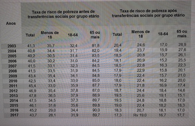 2017 Portugal registou-se uma melhoria significativa do risco de pobreza,